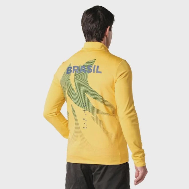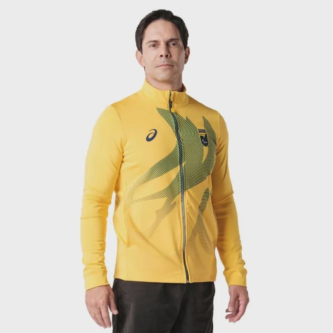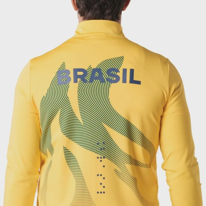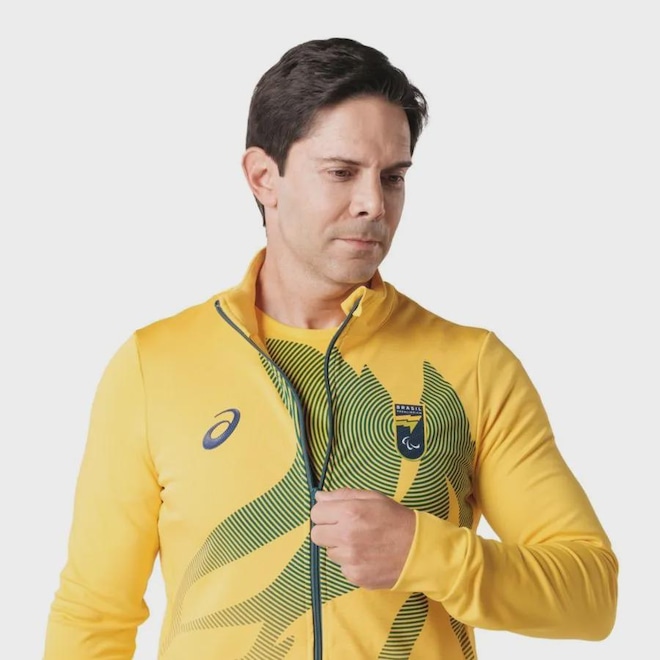 O AGASALHO PODIO ASICS CPB é feito com tecido em poliester com elastano para maior conforto e mobilidade. Leve de secagem rápida, com abertura feita por ziper na parte central trazendo um puxador com cordão para facilitar o abrir e fechar, sem limitar a mobilidade. A peça contém uma manga com abertura, trazendo um acabamento com elástico para facilitar a vestibilidade. O produto conta ainda com patchs em alto relevo, permitindo que a pessoa com deficiência visual possa identificar elementos escritos no agasalho, e principalmente trazendo elementos importantes como a leitura do Brasil escrito em braile. É feita com materiais de secagem rápida que ajudam a manter a peça leve.-