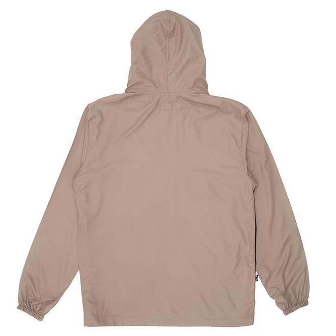 Jaqueta Windbreaker aberta com zíper frontal, capuz sem forro de telinha e cordão, recorto no corpo, bolso lateral embutido, bolso frontal com fechamento de tiras duplas aderentes, elástico nas mangas e regulador na barra, patch no peito e etiquetas personalizadas.