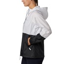 A jaqueta feminina corta vento Flash Forward é produzida com tecido resistente à água e possui capuz ajustável.