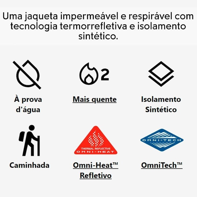 - O forro reflexivo térmico Omni-Heat? retém o calor usando pontos prateados respiráveis ??que refletem o calor do corpo, para que você permaneça aquecido e confortável enquanto a temperatura cai