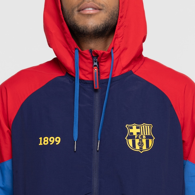 - Fechamento - Zíper - Quantidade de Bolsos - 2 - Tipo de Bolso - Laterais - Capuz - Ajuste por Cordão - Gola - Alta - Barra - Elástico - Tipo de Manga - Punhos Elásticos - Composição do Tecido - Poliéster - Garantia do Fornecedor - 3 meses contra defeitos de fabricação - Conteúdo da Embalagem - 1 Jaqueta - SAC do Fornecedor - CENTAURO: atendimento.centauro.com.br - Time - Barcelona - Tipo do Produto - PRODUTO LICENCIADO.