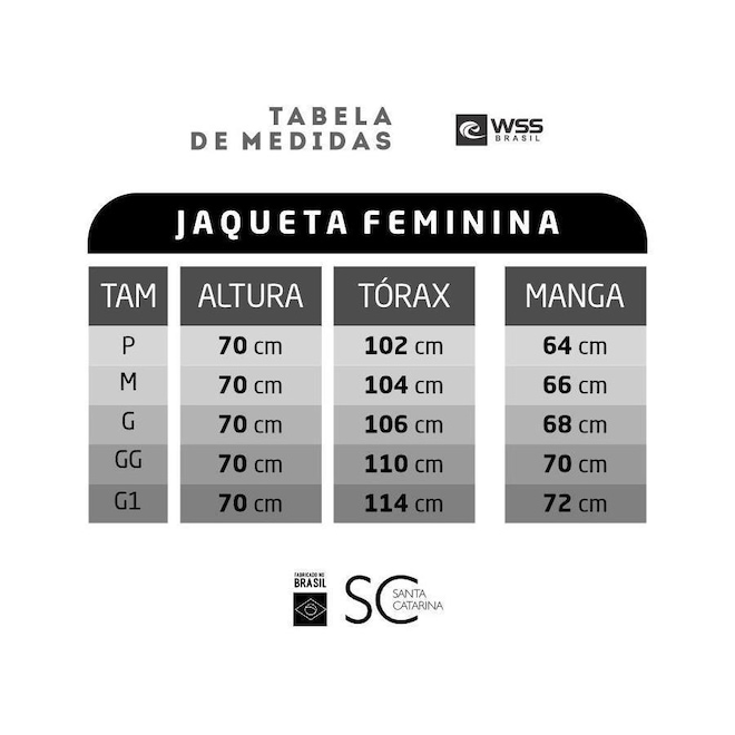 Contém capuz com cordinha para melhor ajuste, dois bolsos, elástico na cintura e pulso, sem forro.