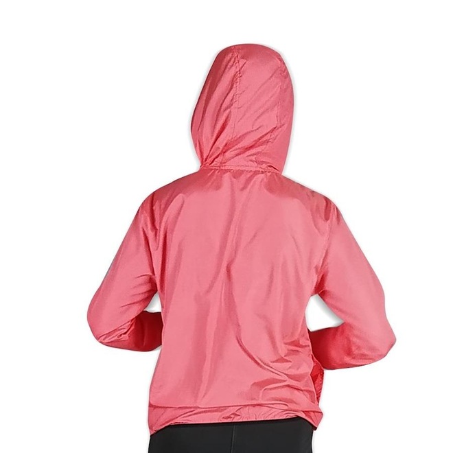 Contém capuz com cordinha para melhor ajuste, gola alta, dois bolsos, elástico na cintura e pulso, secagem rápida, de modelagem reta, sem forro.
