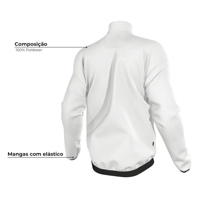 - Acabamento com elástico nas mangas, evitando passar o vento para o corpo