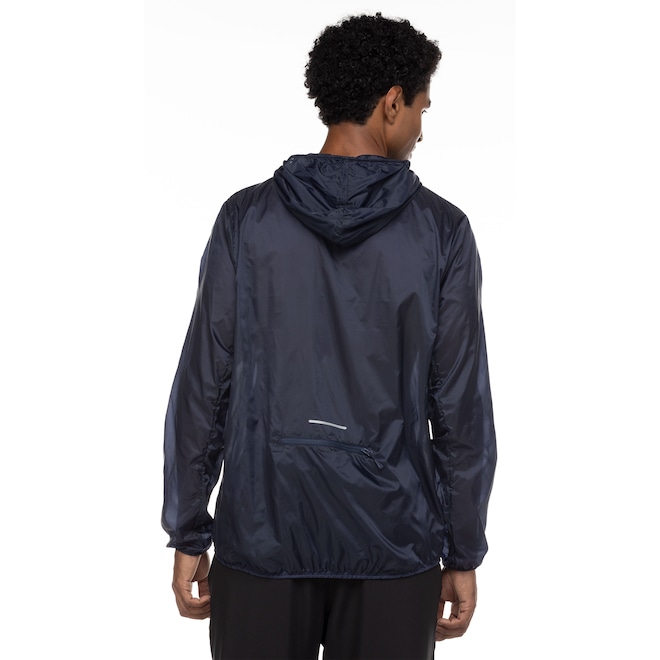 A jaqueta Corta-Vento é Ultraleve, o seu fechamento é em zíper e tem resistência à água.