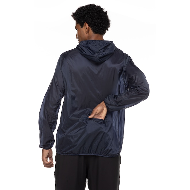 Ainda conta com um bolso traseiro com fechamento em zíper que é a Packable, ou seja, você guarda a jaqueta dentro do próprio bolso. Vai conseguir carregá-la de forma prática caso queira tirar ela na hora dos treinos outdoor.