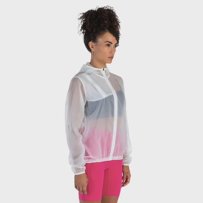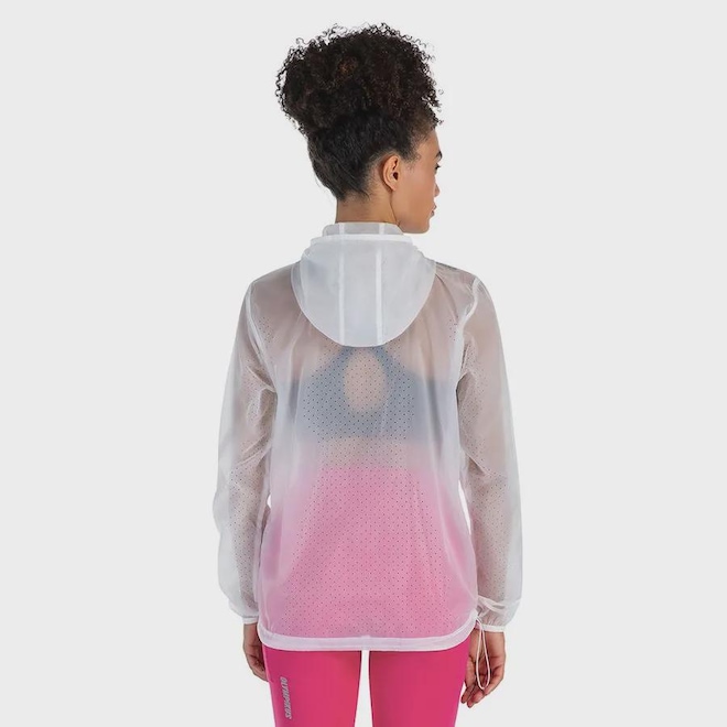 Para se proteger do vento sem abrir mão da leveza. Confeccionada em tecido de poliamida com tecnologia WIND PROTECTION, que bloqueia a passagem do vento e ajuda a manter o conforto térmico. Furos a laser em regiões estratégicas aumentam a ventilação e equilibram a temperatura do corpo durante o corre. Capuz e mangas com elástico, barra ajustável e zíper frontal com trava e acabamento em zipper garage, que evita atrito com a pele. Conta com bolso no ombro direito, funcional tanto para objetos pequenos quanto para embalar a peça no modo packable. Logos refletivos garantem visibilidade em ambientes com pouca luz.