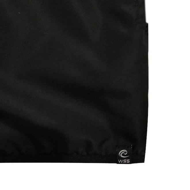 A Corta Vento WSS possui tecido com tratamento repelente à água, modelagem reta, capuz com cordinha para melhor ajuste, gola alta, dois bolsos, sem foro, elástico na cintura e pulso.