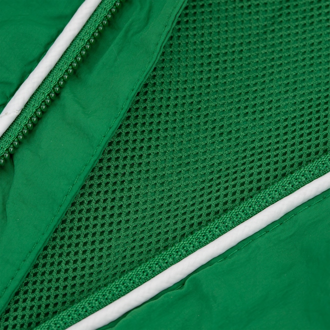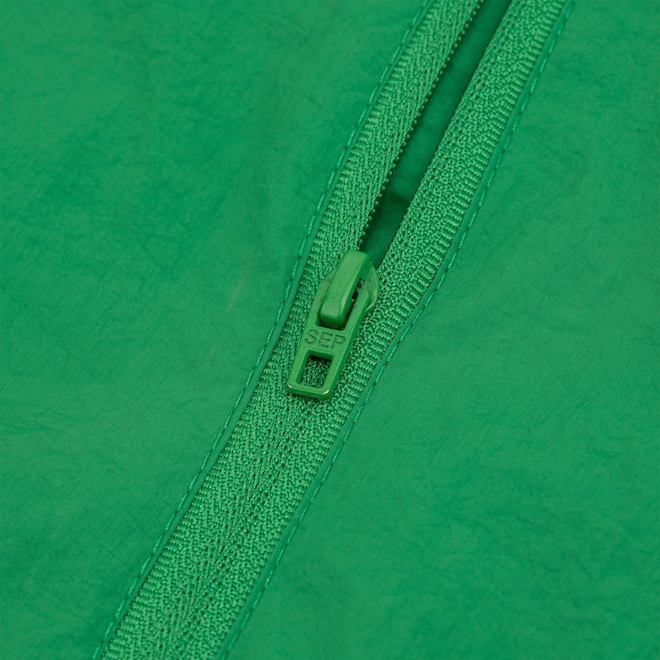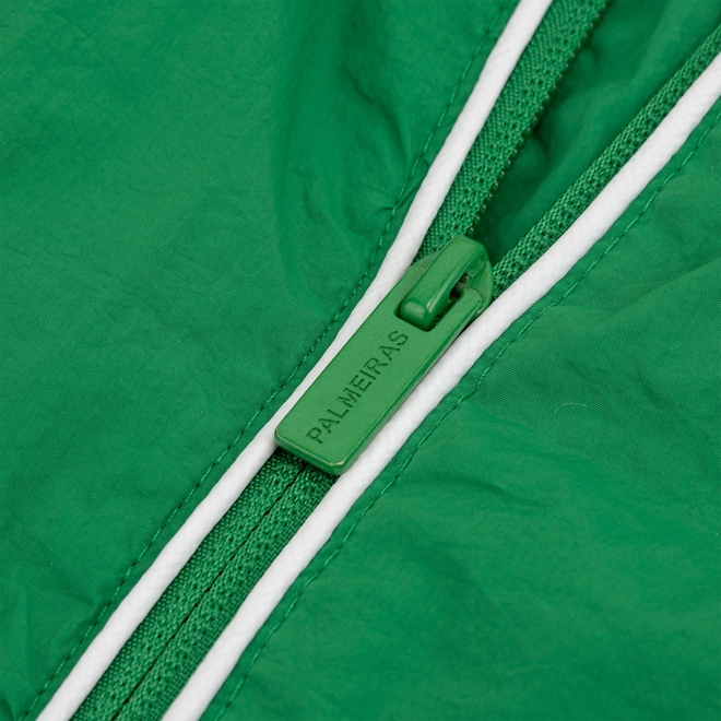 A jaqueta corta-vento Premium do Palmeiras apresenta capuz retrátil com zíper, gola alta, barra e punhos elásticos, além de bolsos laterais com zíper que aumentam a praticidade.