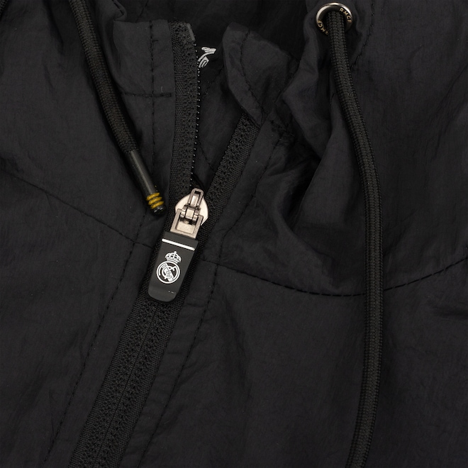 PoliamidaGarantia do Fornecedor Contra Defeito de Fabricação Conteúdo da Embalagem 1 Jaqueta Punho Elástico Time Real Madrid Escudo Clube Quantidade de Bolsos 2 Tipo de Bolso Dois Bolsos Laterais com Zíper Forro Sim