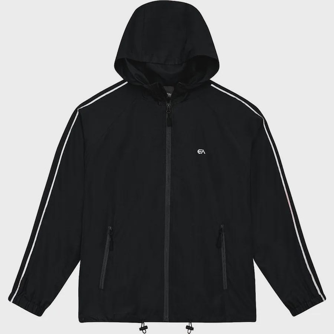 Proteção Versátil: Possui capuz para proteção extra e bolsos frontais com zíper, ideais para guardar itens essenciais com segurança.