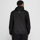 A barra é ajustada por cordão, punhos elásticos, além de gola alta com capuz embutido para maior proteção.