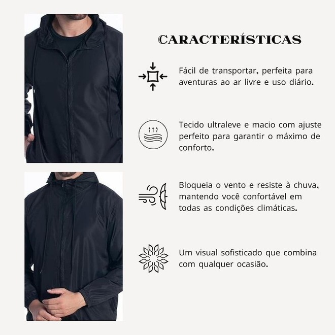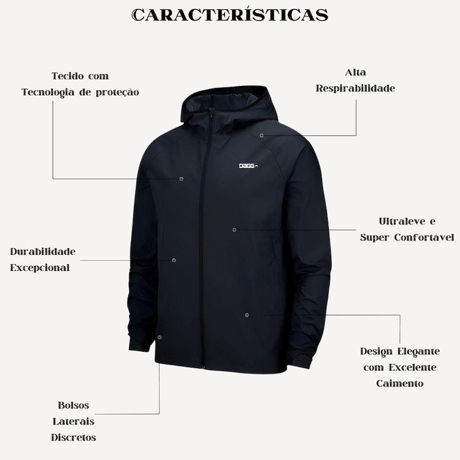 A Jaqueta Corta Vento Dagg é uma peça indispensável no seu dia a dia! Protege dos ventos e chuvas graças ao seu tecido impermeável, e possui um design slim elegante, compacto e ultraleve, garantindo conforto e ocupando pouquissimo espaço. Além de toda a qualidade de proteção, ela possui um estilo incrível, com um excelente caimento, valorizando qualquer visual.