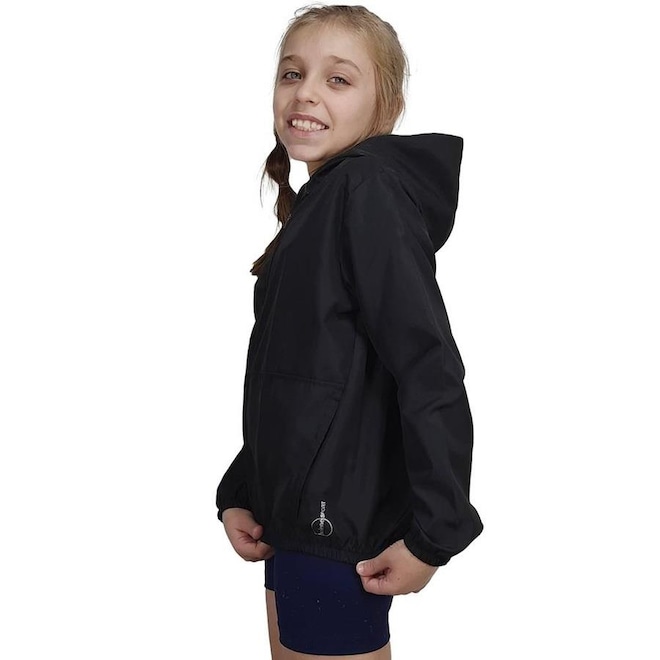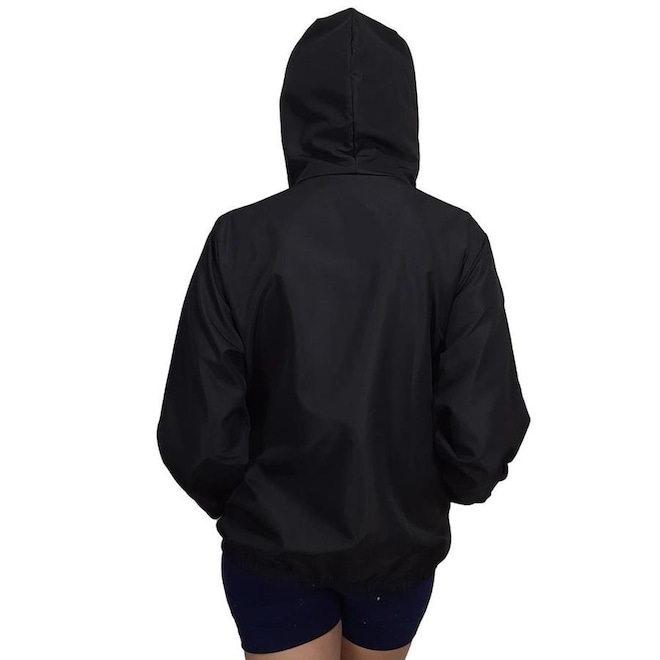 Feita em poliéster, ela oferece resistência e proteção contra o vento, com abertura frontal em zíper e o capuz proporcionam praticidade e conforto. Os bolsos são úteis para guardar pequenos objetos.