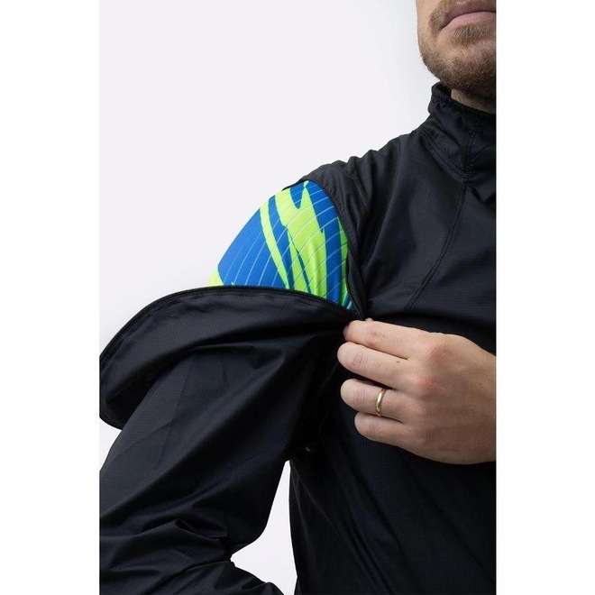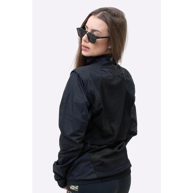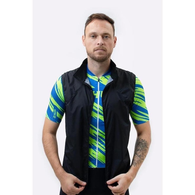 A jaqueta ainda conta com saídas de ar nas costas para maior respirabilidade e praticidade, permitindo acesso fácil aos bolsos da jersey de ciclismo.