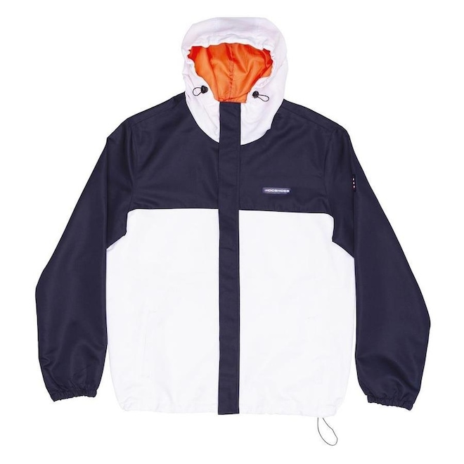 Jaqueta DC Shoes feita em modelagem standard fit, nylon pesado repelente a água, forro total de cetim, forro do capuz em cetim contrastante, recorte no tórax frente e costas com tecidos contrastante, punho e barra com elástico interno, recorte no capuz, vista contrastante com fechamento com tiras duplas aderentes, fechamento principal em zíper, estampa no peito, estampa costas, estampa no braço e elástico com reguladores plásticos no capuz e barrra.