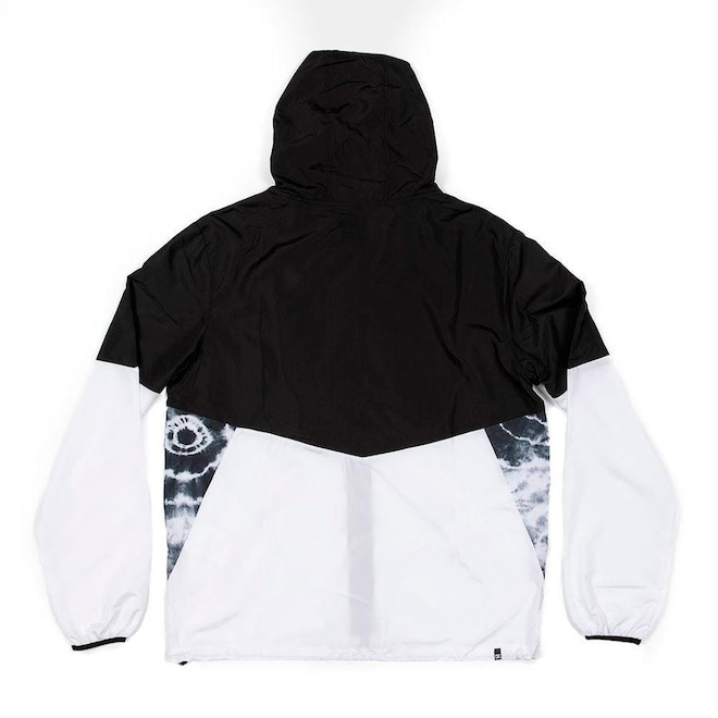 Windbreaker packable DC Shoes com tecido de nylon leve, estampa vertical no peito, bolso vertical packable no peito para guardar a peça toda, recortes triangulares no tórax e costas, recortes triangulares nas laterais com estampa tie dye, bolsos embutidos nas laterais, elástico nos punhos, ajustador com elástico e stopper no capuz e na barra.