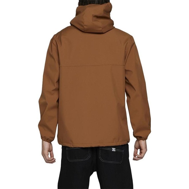 Jaqueta DC Shoes feita em modelagem standard fit, tecido de poliéster externo totalmente impermeável com a parte interna em fleece, recorte no tórax frente e costas, recortes no capuz, bolsos embutidos, fechamento com zíper, patch emborrachado aplicado no peito, punho com elástico interno e elástico com reguladores plásticos no capuz e barra.
