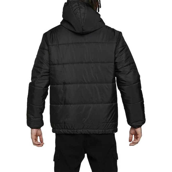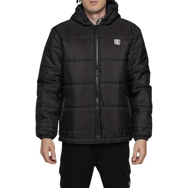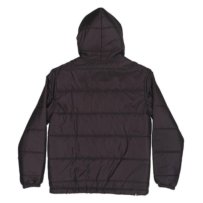 Jaqueta DC Shoes feita em modelagem standard fit, tecido de nylon leve, matelassê horizontal, preenchimento de manta acrílica, forro de cetim, bolsos embutidos, fechamento com zíper, etiqueta emborrachada aplicada no peito, elástico com regulador no capuz e elástico interno no punho e bara.