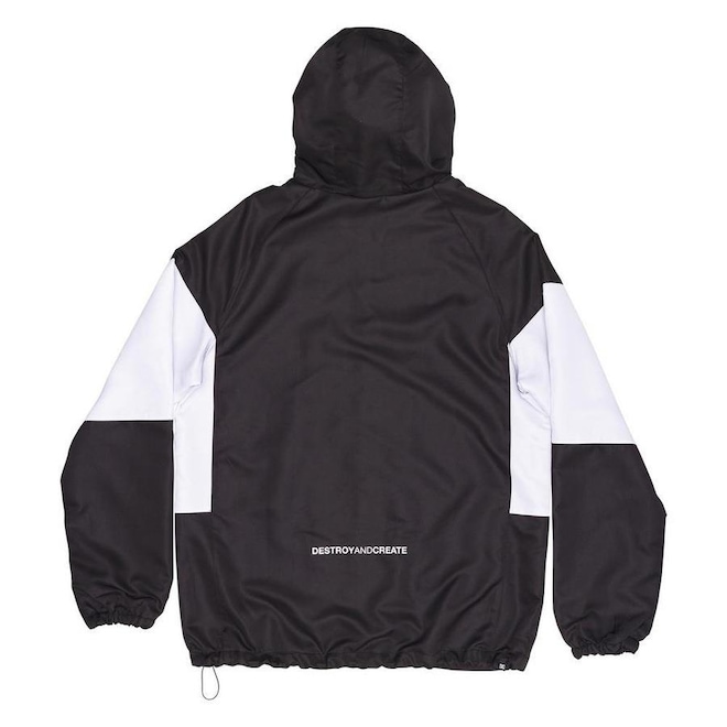 Jaqueta DC Shoes feita em modelagem standard fit, tecido de nylon leve repelente a água, recortes nas mangas e no tórax contrastante, recorte no capuz, estampa no peito, estampa na parte inferior das costas, forro total de mesh, bolsos embutidos, elástico interno no punho e elástico com reguladores plásticos no capuz e barra.