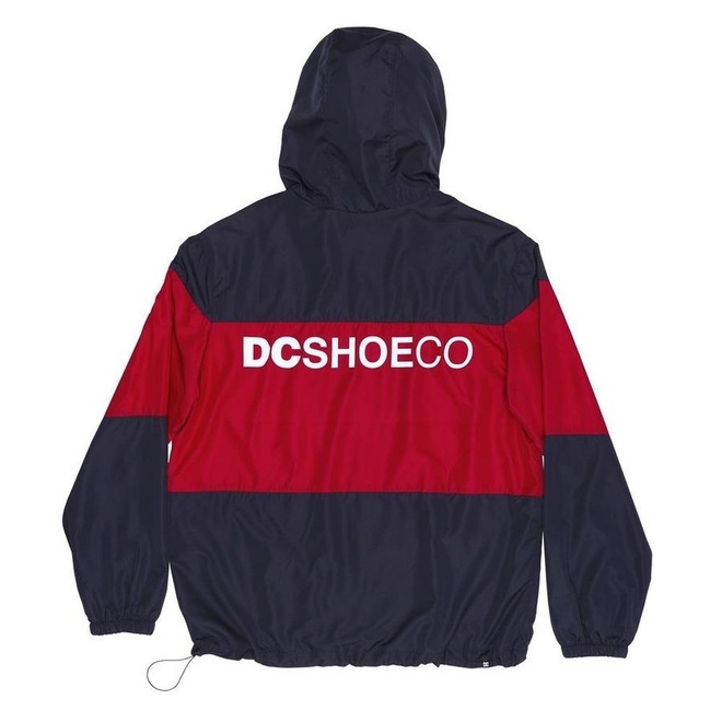 Jaqueta DC Shoes feita em modelagem standard fit, tecido de nylon leve repelente a água, recortes no tórax e mangas com tecidos contrastantes, recorte no capuz, estampa nas costas, forro do capuz contrastante, bolsos embutidos nos recortes do tórax, estampa no peito, viés de elástico no punho e elástico com reguladores plásticos no capuz e barra.