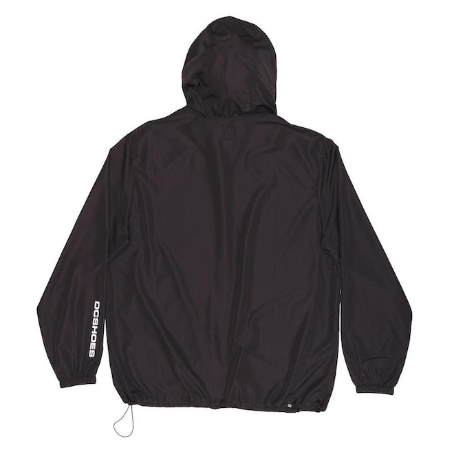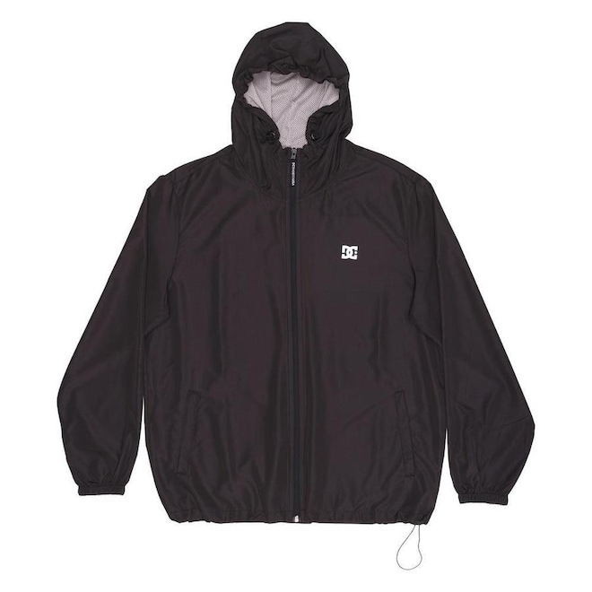 Jaqueta DC Shoes feita em modelagem standard fit, tecido de nylon leve repelente a água, recorte no capuz, forro do capuz em mesh contrastante, bolsos embutidos, estampa refletiva no peito, viés de elástico no punho e elástico com reguladores plásticos no capuz e barra.