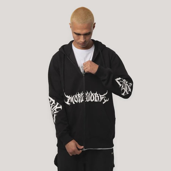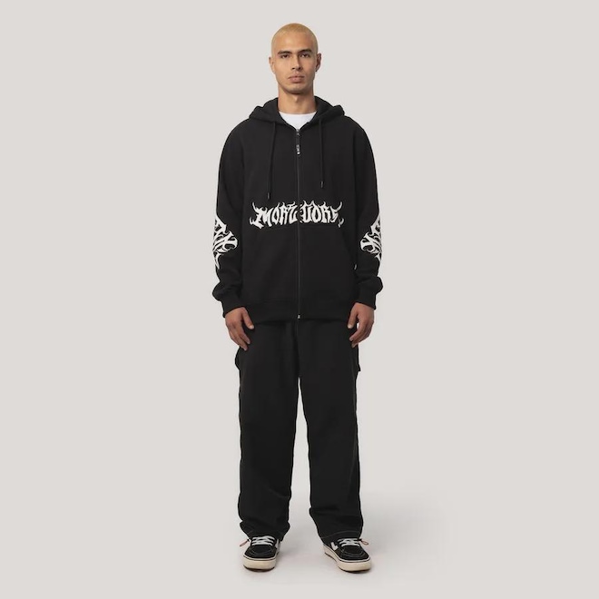 Herança da raiz californiana da MCD, uma linha que sempre está presente nas coleções, dessa vez com uma inspiração em tipografias de bandas de metal e estética gótica.ref: M17WHR