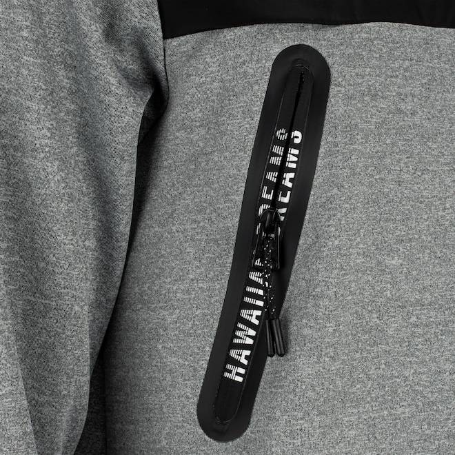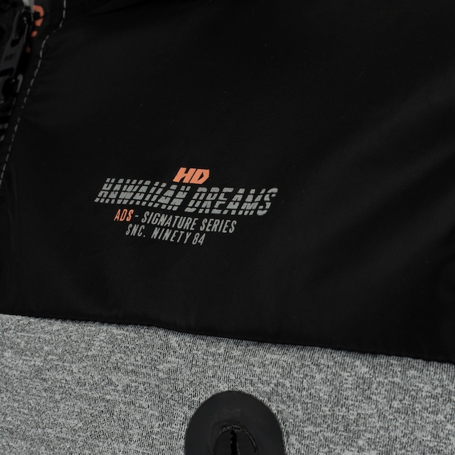 Sua barra é elástica e punhos elásticos e canelados, além de tecido em acabamento repelente a água com secagem mais rápida.