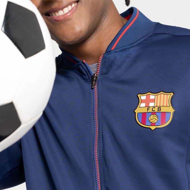De ótimo acabamento com detalhes nas cores do clube, essa incrível e atraente Jaqueta do Barcelona Masculina Recortes é a maior prova de orgulho para vestir o torcedor apaixonado nos dias de jogos, treinos e lifestyle.