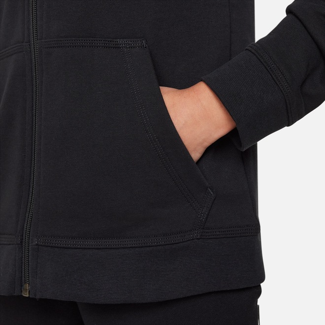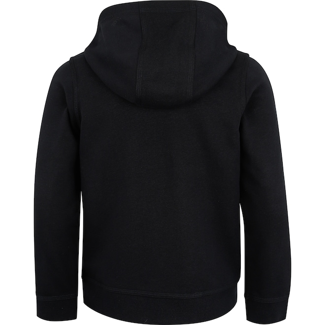 O modelo tem capuz funcional, dois bolsos laterais para praticidade e o escudo bordado com acabamento de qualidade.