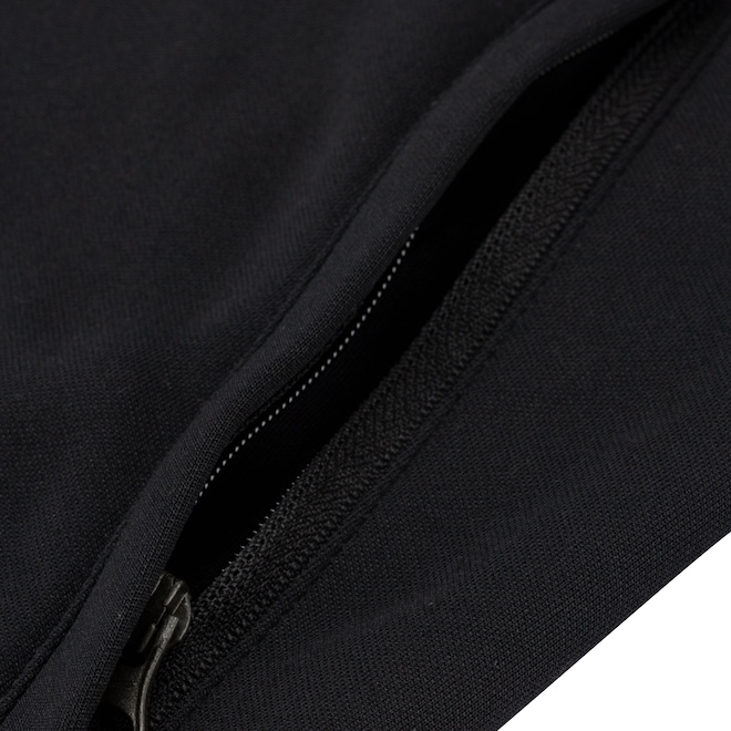 De fechamento em zíper, com bolsos frontais em zíper e forro levemente flanelados.