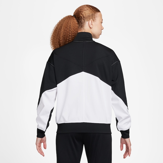 Produzida com tecnologia Nike Dri-FIT, que mantém o corpo seco e confortável, a peça traz design moderno com gola alta canelada e zíper, punhos elásticos, dois bolsos laterais com zíper e caimento solto (loose fit).