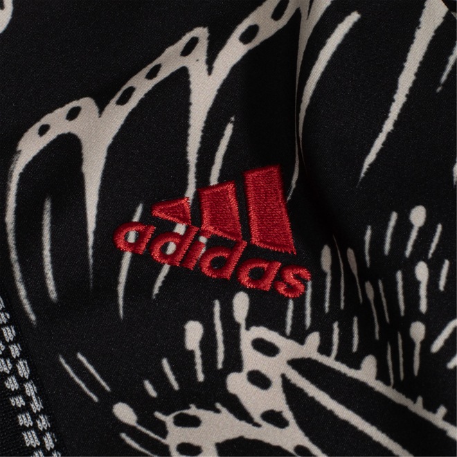 Seu design moderno e diferenciado, fruto da colaboração entre adidas e Farm, exibe o amor pelo Flamengo com elegância.