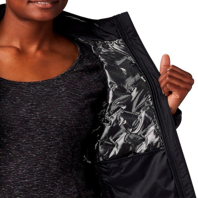 Tecnologias: A tecnologia exclusiva da Columbia Omni-Heat tem como destaque a propriedade refletiva que garante o aquecimento do seu corpo em condições extremas de frio.Os pontos metálicos presentes em 35% do tecido refletem o calor gerado pelo seu corpo enquanto o tecido respirável dissipa a umidade e evita o superaquecimento Leve e elegante, a tecnologia Heat Seal elimina os pontos gerados pela costura com uma selagem térmica.