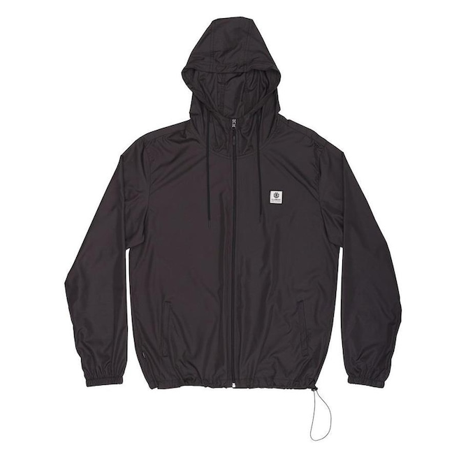 Jaqueta Element com capuz e cordão para ajuste, ajustadores embutidos na barra, zíper com puxador personalizado, bolsos embutidos, patch frontal e etiquetas personalizadas element.