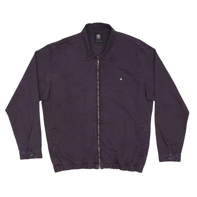Jaqueta Element feito de sarja com fit amplo, fecho em zíper metálico, botões personalizados nos punhos e mini patch aplicado no peito.