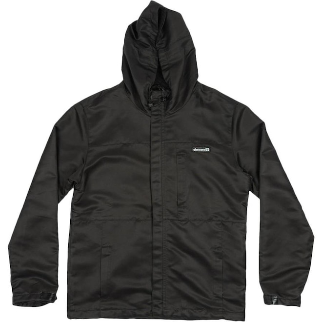 Jaqueta da linha Wolfeboro, com capuz, forro em matelassê, recortes, zíper frontais com puxadores personalizados e vista, bolsos embutidos com fechamento em zíper, repelente à água, ajustadores no capuz e barra, patch e etiquetas personalziadas Element.