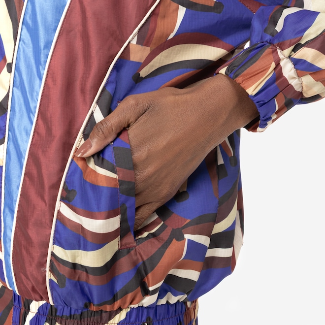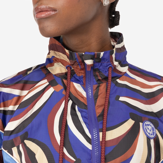 Seus microfuros garantem ventilação ideal, enquanto a gola alta com zíper e cordão, punhos e barra elásticos proporcionam conforto e ajuste impecável.