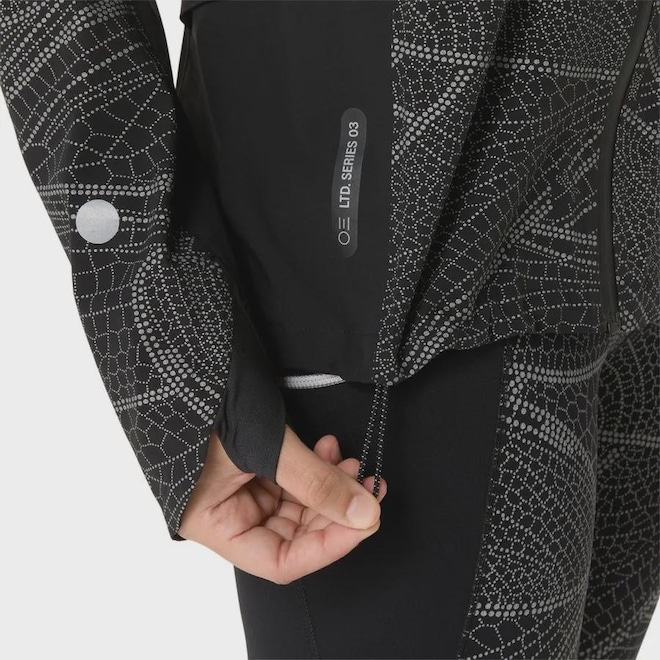 Energize sua corrida com a jaqueta LITE-SHOW™ EDIÇÃO LIMITADA, que apresenta uma estampa refletiva exclusiva por toda a peça. Desenvolvida com uma fita refletiva que atravessa as costas, ela melhora a visibilidade em treinos realizados no início da manhã ou no fim da tarde. Seu design ergonômico foi criado pelo Instituto de Ciências do Esporte da ASICS para oferecer suporte com maior liberdade de movimento. Confeccionada em tecido impermeável e resistente ao vento, a jaqueta conta ainda com um capuz tecnológico, com faixa integrada à cabeça, garantindo proteção e conforto em condições climáticas adversas. A estampa de edição limitada é inspirada na libélula, simbolizando a conexão entre a cultura japonesa, a natureza e a força. Parte da coleção LITE-SHOW™, esta jaqueta conta com detalhes refletivos projetados para melhorar a visibilidade em condições de pouca luz. Seu design ergonômico, resultado de um corte com padrão 3D desenvolvido pelo Instituto de Ciências do Esporte da ASICS, oferece maior liberdade de movimento. O tecido é impermeável, com costuras internas seladas e revestimento com tratamento DWR 10K/10K, garantindo resistência à água e ao vento. Funcional, o modelo possui bolso no peito para armazenamento seguro, dois bolsos laterais e uma abertura nas costas que favorece a respirabilidade. O capuz técnico, com faixa integrada à cabeça e ajuste regulável, proporciona proteção adicional contra a chuva. A estampa sazonal, inspirada na libélula, representa a conexão entre a cultura japonesa, a natureza e a força. Além disso, pelo menos 50% do material principal é feito com conteúdo reciclado, contribuindo para a redução do desperdício e das emissões de carbono.-