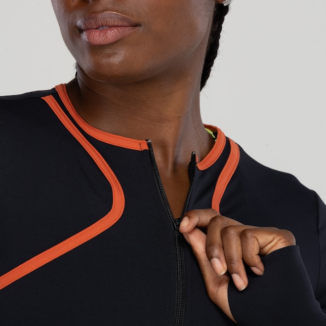Fechamento Zíper Quantidade de Bolsos 3 Tipo de Bolso Traseiros Gola Careca Tipo de Manga Com Abertura Para Polegar