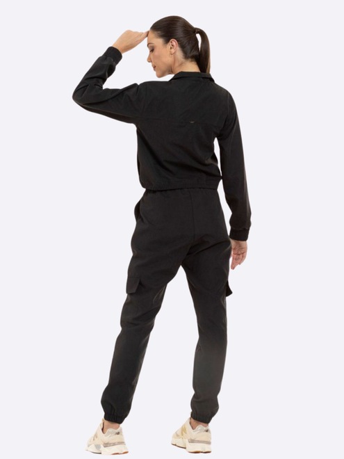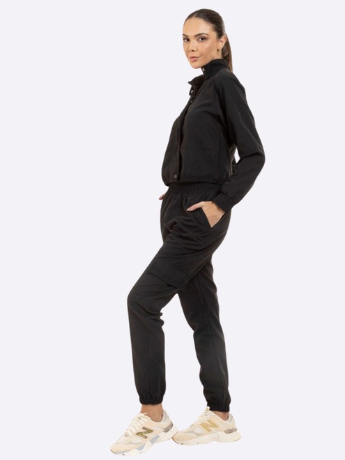Estilo Moderno: O design com zíper, botões e elásticos confere um visual contemporâneo e estiloso.
