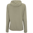 Possui fechamento em zíper, gola alta e capuz integrado que aumenta a proteção.
