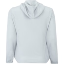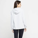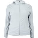 Possui fechamento em zíper, gola alta e capuz integrado que aumenta a proteção.