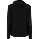 Possui fechamento em zíper, gola alta e capuz integrado que aumenta a proteção.