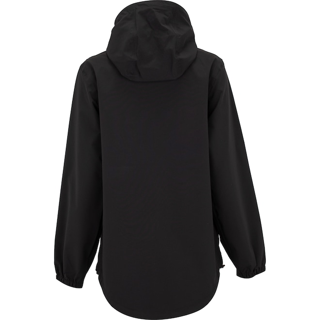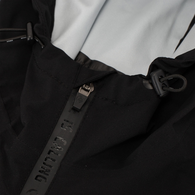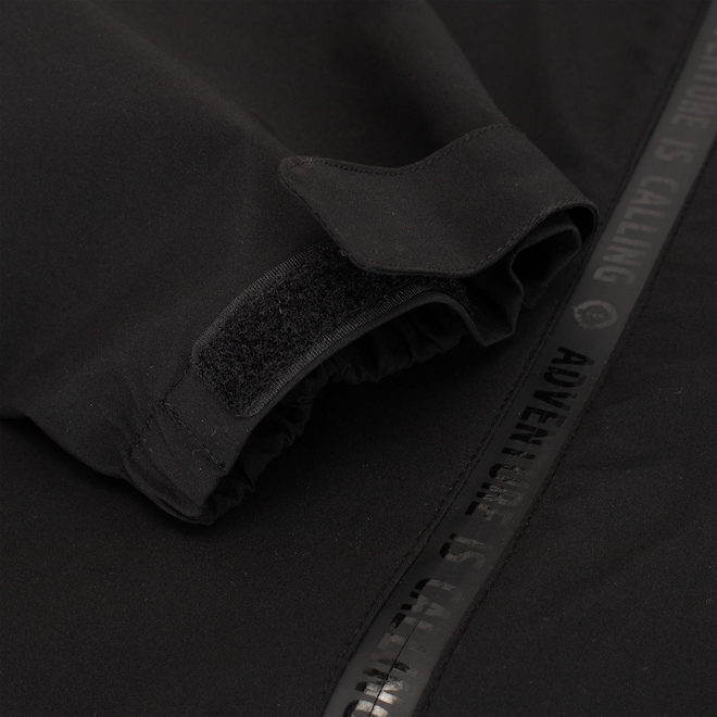 Possui 5 bolsos para guardar os objetos perto das mãos, o capuz tem ajuste em cadarço e sua barra tem cordão interno.
