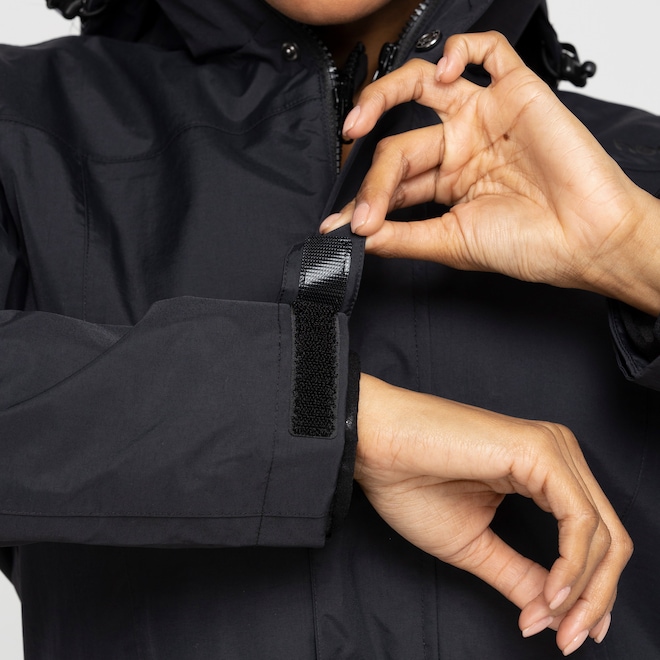 A Jaqueta Externa conta com ajuste nos punhos e em sua barra, o frio na hora de sua trilha vai ter que lutar para te incomodar.