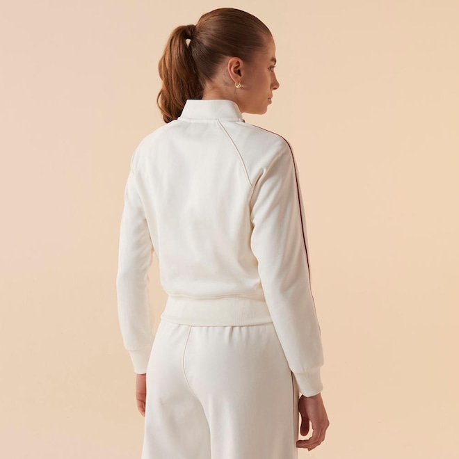 Detalhes de Acabamento: Apresenta abertura frontal com zíper para praticidade, além de punhos e barra em ribana, que garantem um ajuste confortável e mantêm a peça no lugar.
