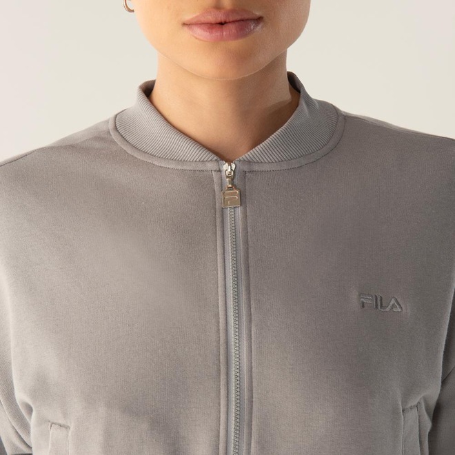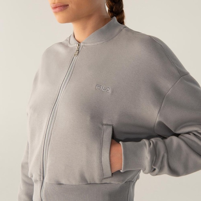 Jaqueta feminina produzida com tecido ecológico em malha de moletom. Na modelagem comfort, traz gola, punhos e barra de ribana. As cavas deslocadas proporcionam maior liberdade de movimento, e os bolsos com vivo, fechamento em zíper e puxador F-Box dão um toque de praticidade. O bordado FILA Letter no peito adiciona um detalhe clássico e autêntico.