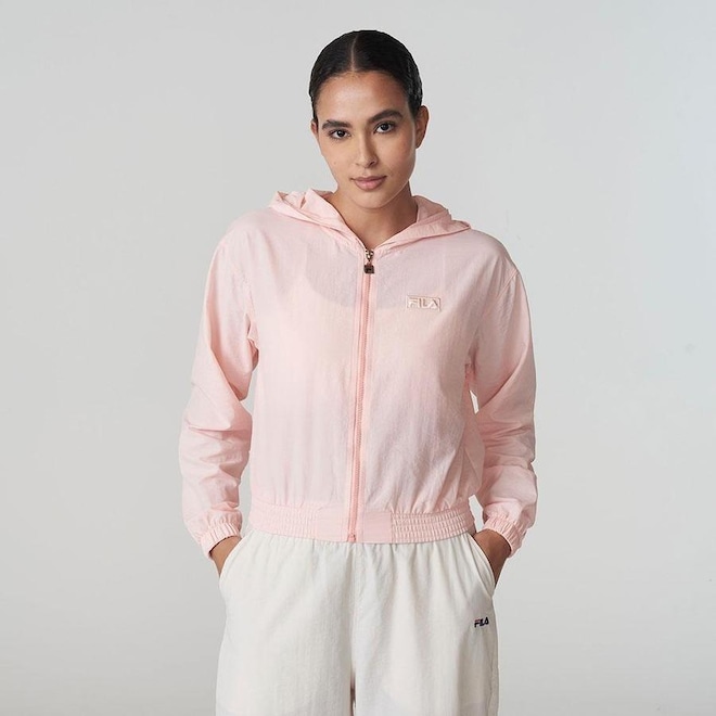 Jaqueta com Capuz Fila Essencial - Feminina Jaqueta com capuz e abertura frontal de zíper com puxador F-Box personalizado. Confeccionada em tecido 100% poliamida, possui cós elástico largo, punho das mangas tombado e acabamento de costura rebatido nos ombros. Leva patch Fila Letter bordado em tom surton na parte frontal, no peito.