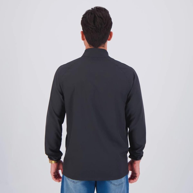 Composição: 85% Poliéster 15% Elastano Bolsos: Dois frontais, sem zíper Abertura/fechamento: Zíper Cor predominante: Preta Gênero: Masculino Logo: Estampado Origem: Nacional Manga: Longa Gola: Alta Capuz: Não Forro: Não Dimensões aproximadas (A x L): P: 68 x 52 cm M: 70 x 54 cm G: 72 x 56 cm GG: 74 x 58 cm EG: 76 x 60 cm EEG: 78 x 62 cm